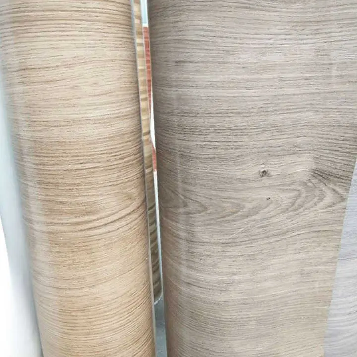 Película decorativa de PVC Película impresa de grano de madera para pisos.